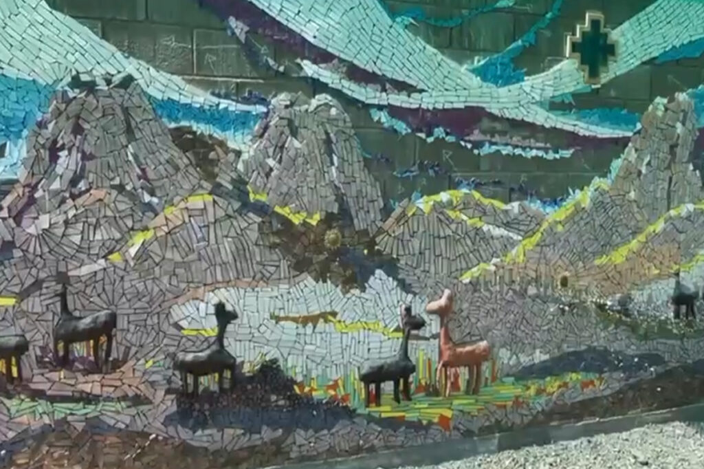 Este mosaico es una obra de Elena Wang, Lourdes Flavià, Elsa Victoria Lisarazo y Pepe Castaño.